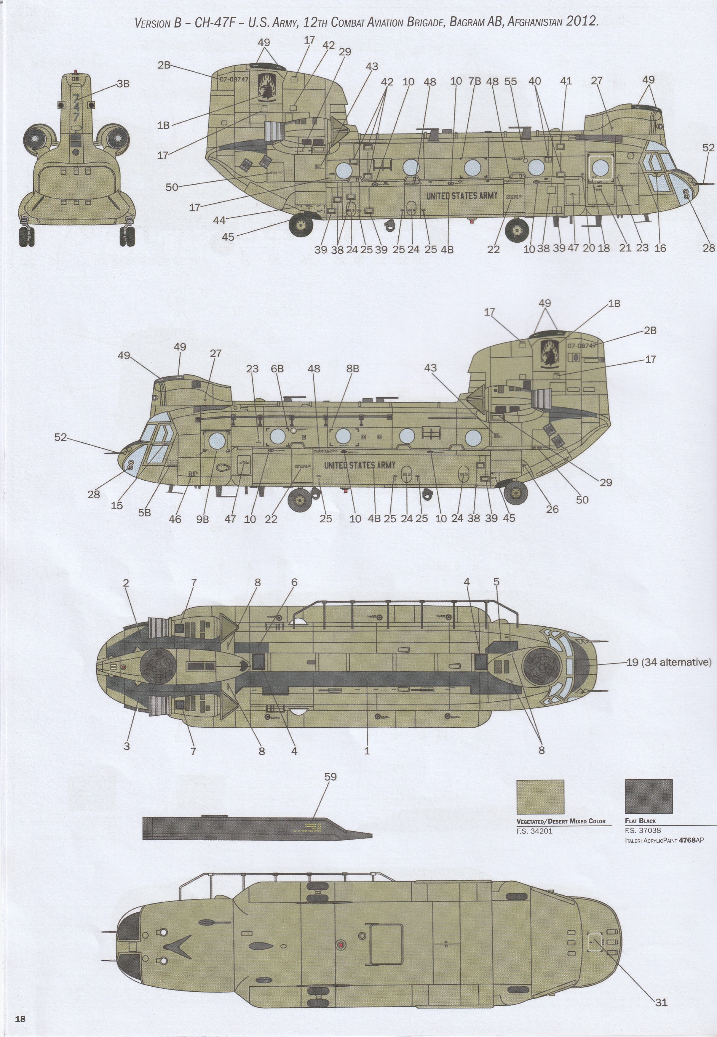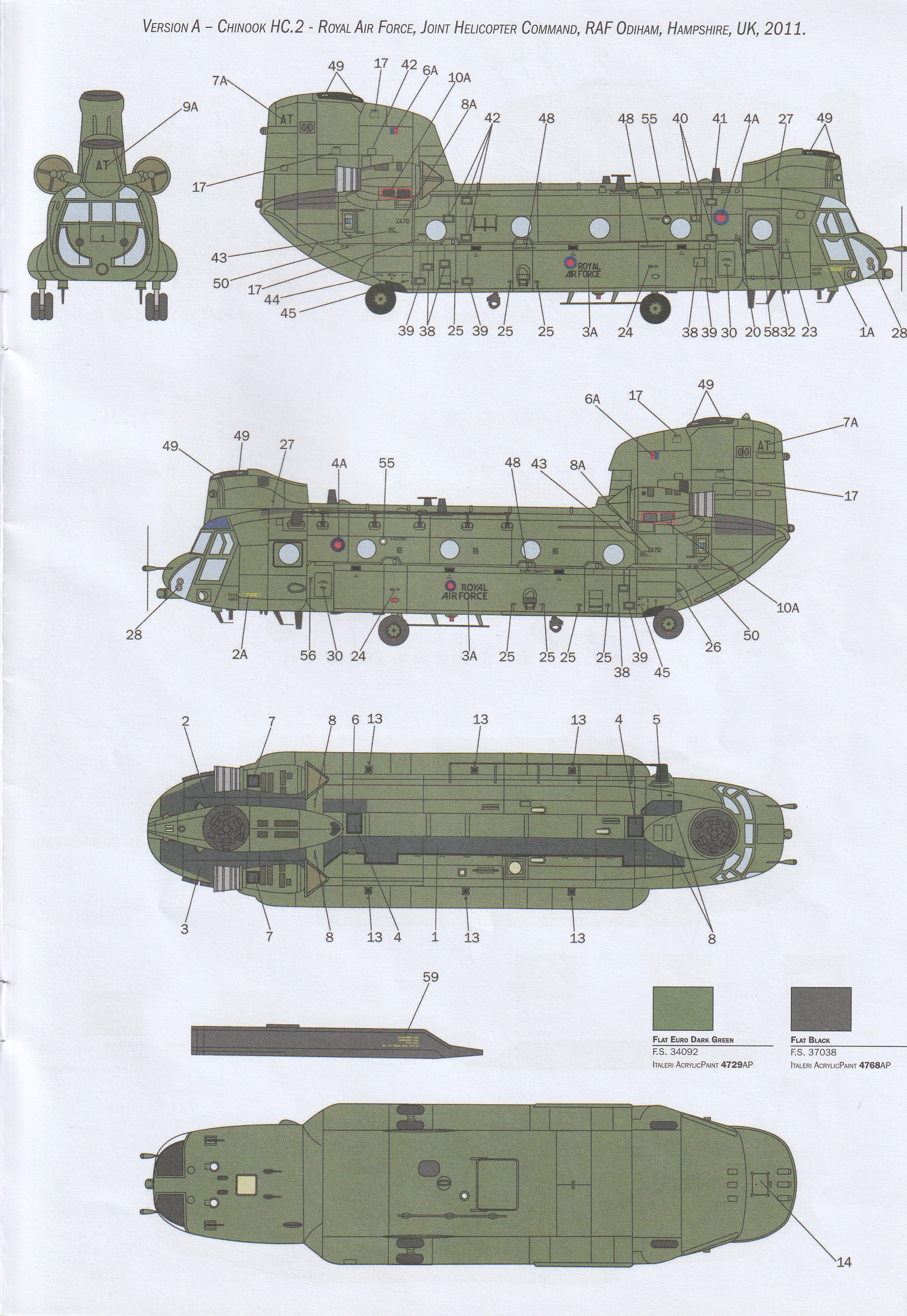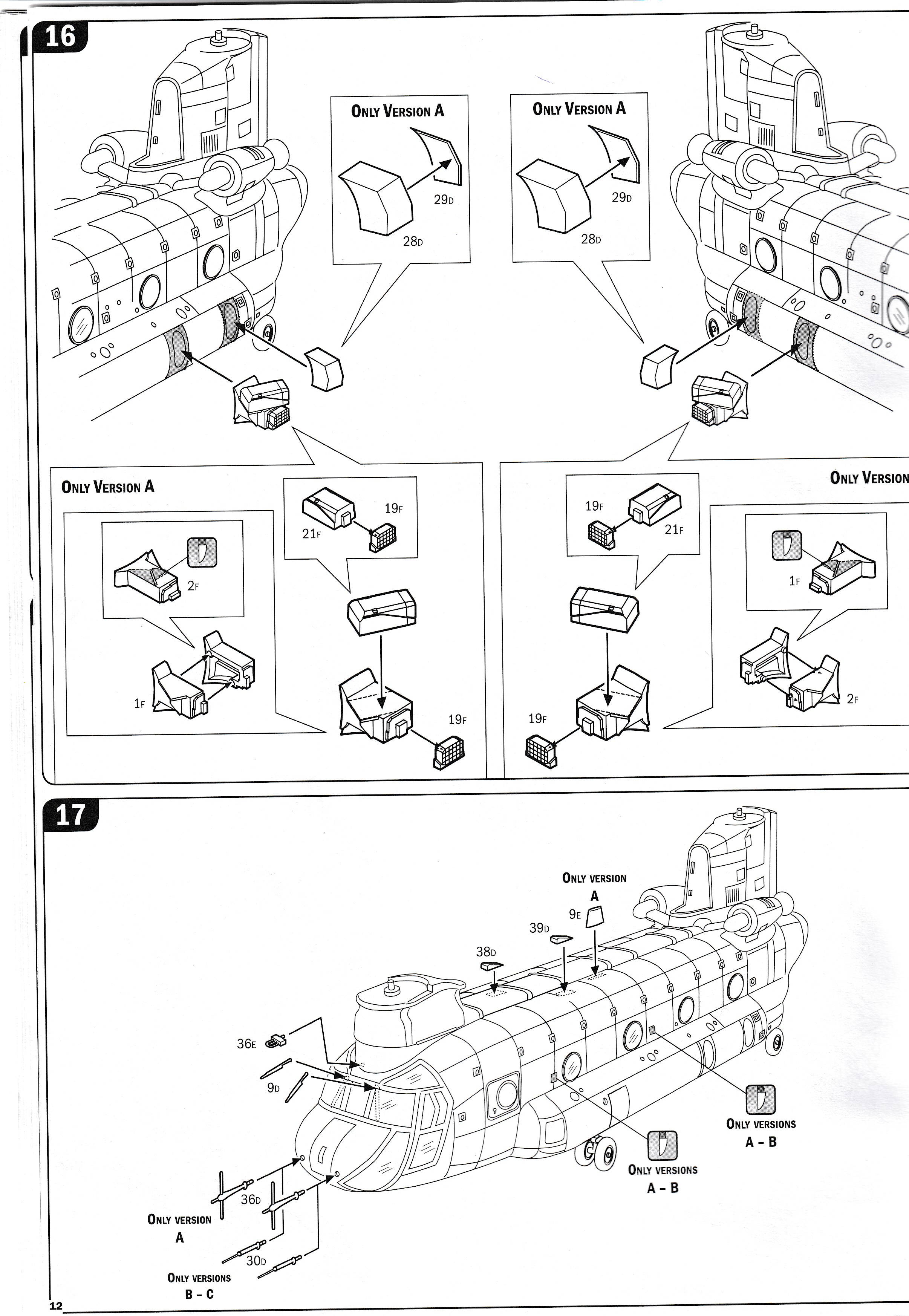 This is the "F" boxing of Italeris great Chinook line of kits. It includes everything you need to make the F as well as the earlier D version, but does not have the larger